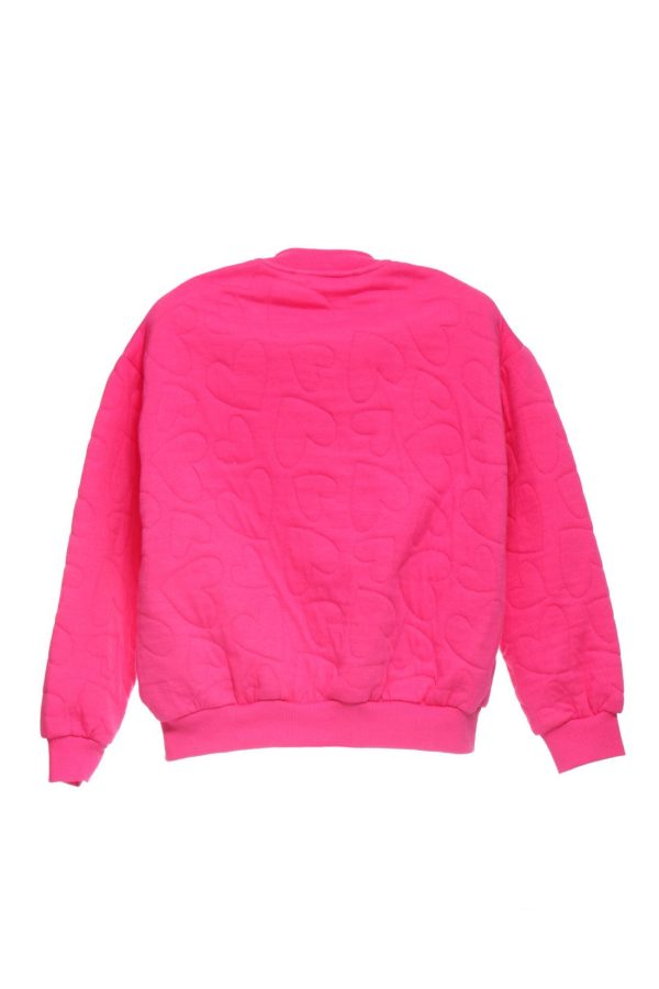 Bomber fucsia con un ocrazón y ARP de color rojo. Coleccion: FEELINGS. Tallaje desde 04 hasta la talla 14. No lavar a maquina. No usar lejía/blanqueador. Limpieza en seco. No usar secadora. Composicion: 83%CO 17%PES