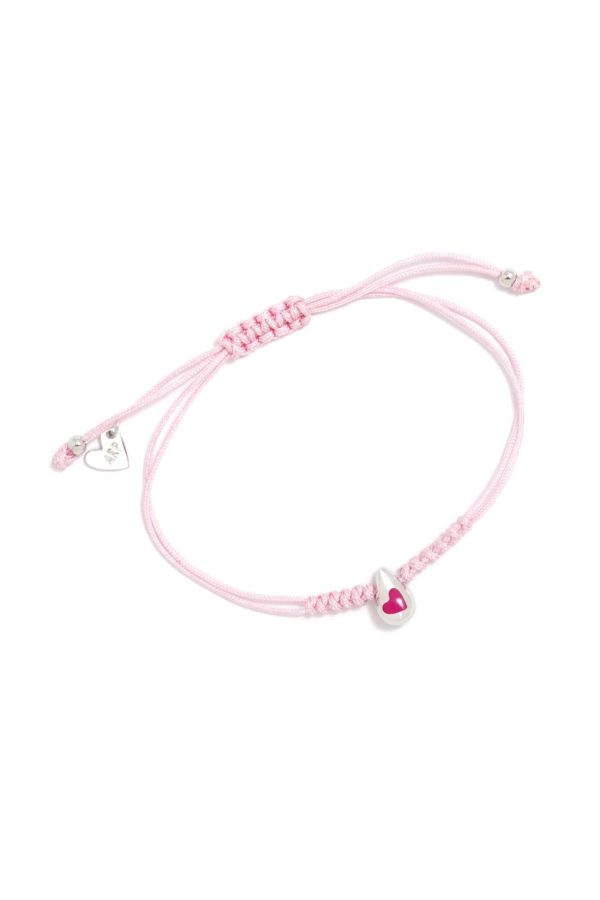 Pulsera cordón algodón con plata de ley y baño de rodio, con esmalte y cierre de mosquetón. Tiene cadena de extensión Pendientes: Por razones de higiene, sólo se admiten devoluciones de artículos rotos o defectuosos de fábrica.