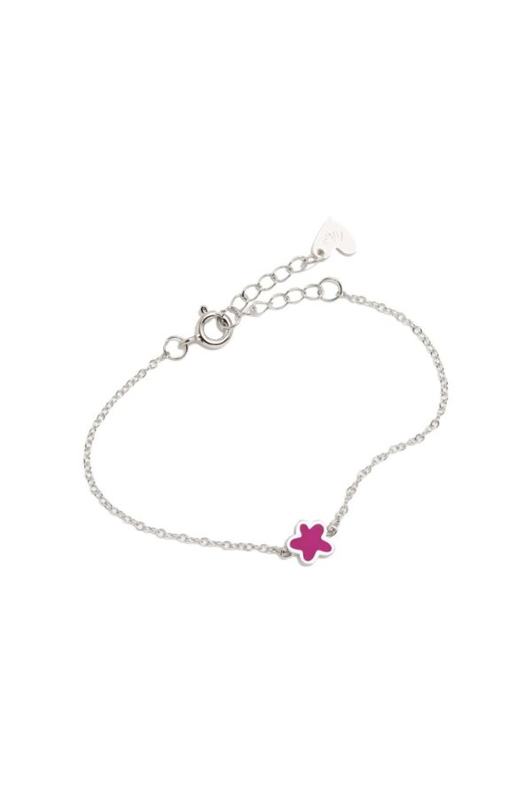 Pulsera de plata con un flor esmaltado en color fucsia. Colección : New Super Agatha