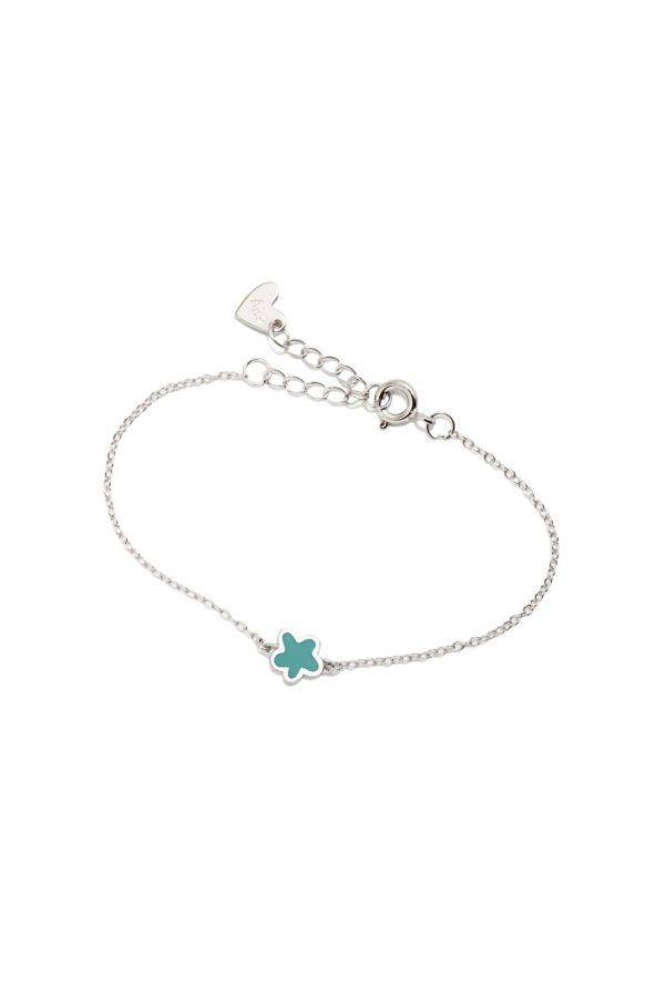 Pulsera de plata con un flor esmaltado en color turquesa. Colección : New Super Agatha