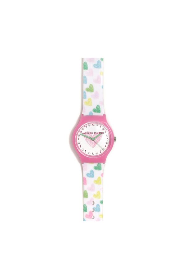 Reloj con caja de plástico, correa sándwich-band de PVC multicolor, hebilla de acero (maquinaria japonesa Seiko. Reloj pequeño de pila con correa de PVC. NO SE PUEDE MOJAR.
