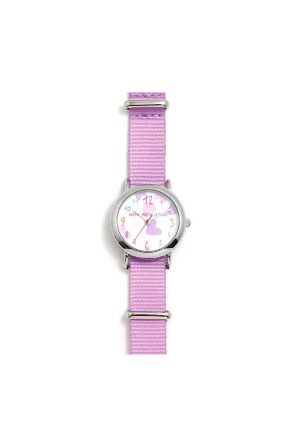 Reloj strap lila. Reloj analógico de cuarzo con caja de acero y correo tejido técnico. NO SE PUEDE MOJAR.