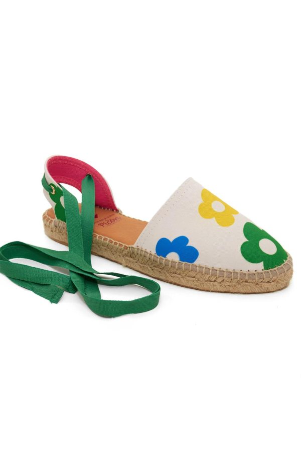 Alpargata de mujer en corte de Textil Flores con planta de piel y piso de yute. Material del corte:Textil Flores. Forro: Forro textil. Planta: Planta de piel acolchada. Piso: Yute. Altura: 2 cms. Hecho en España. Hechos a mano.