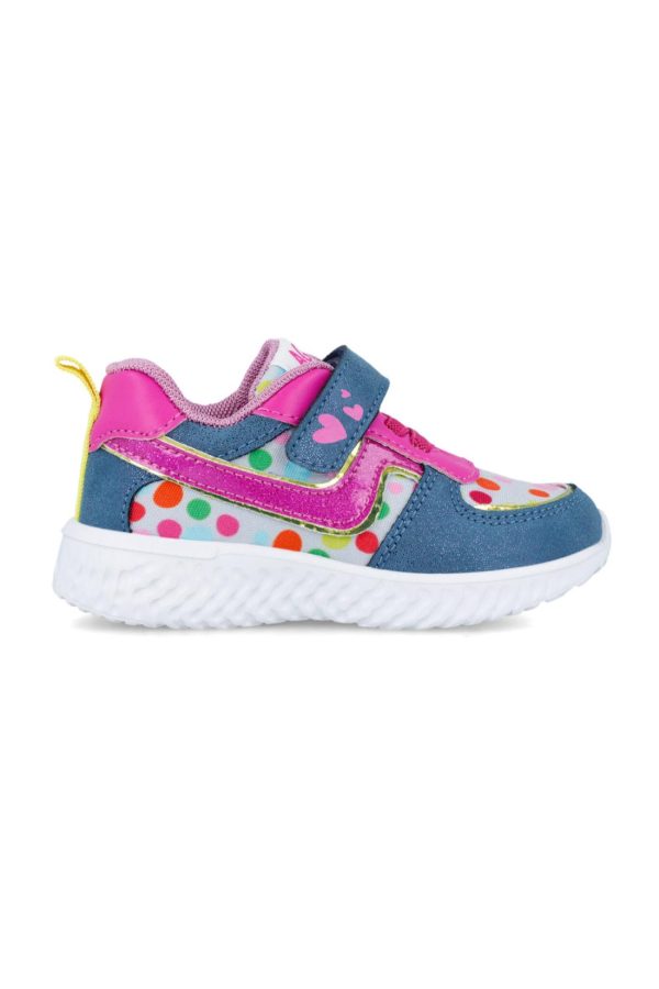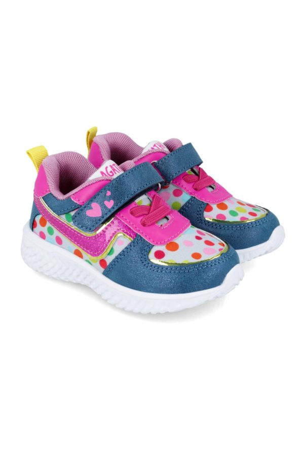 Deportivo elásticos de color azul con la suela de color blanco y cierre con 1 tira de velcro superior. Tallaje desde el 22 al 30.